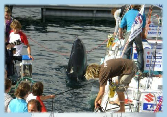 Notre ami le dauphin, jouant avec les amarres !!