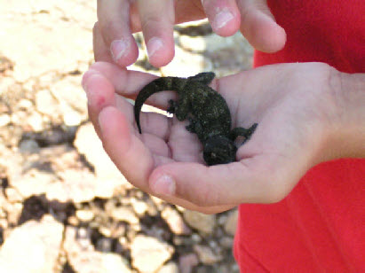 Yannis et un Osga que lui a confié le gardien.