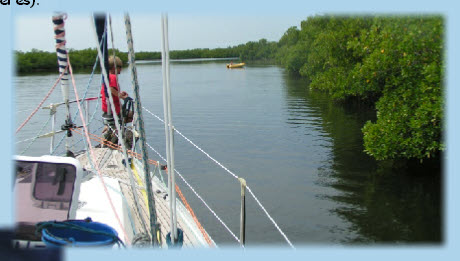jusqu’à l’entrée du bolong de Moundé, ensuite à l’aide de l’annexe