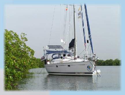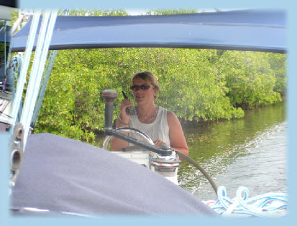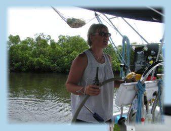 Hélène à la barre nous réussirons à aller mouiller devant l’embarcadère