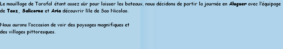 Le mouillage de Tarafal se révélera très venteux mais plutôt agréable et bien